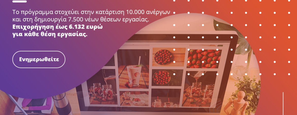 Nέο καινοτόμο «πρόγραμμα επιχορήγησης επιχειρήσεων για την απασχόληση ανέργων, ηλικίας 25 έως 45 ετών» που στοχεύει στην κατάρτιση 10.000 ανέργων και στη δημιουργία 7.500 νέων θέσεων εργασίας πλήρους απασχόλησης.