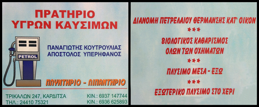 Η εταιρεία με την επωνυμία ΚΟΥΤΡΟΥΛΙΑΣ Π. – ΥΠΕΡΗΦΑΝΟΣ ΑΠ. Ιδιωτικής Κεφαλαιουχική Εταιρεία (Ι.Κ.Ε.) ιδρύθηκε τον Σεπτέμβριο του 2014 από τους Παναγιώτη Κουτρούλια & Απόστολο Υπερήφανο με έδρα τον δήμο Καρδίτσας (3ο χλμ Καρδίτσας – Αθηνών) και υποκατάστημα επί της Τρικάλων 247 στην πόλη της Καρδίτσας, με σκοπό την εμπορία πετρελαιοειδών και λιπαντικών χονδρικής και λιανικής, πρατήριο υγρών καυσίμων, παροχές πλυντηρίου, πώληση αξεσουάρ αυτοκινήτων, λιανικό εμπόριο αναψυκτικών.